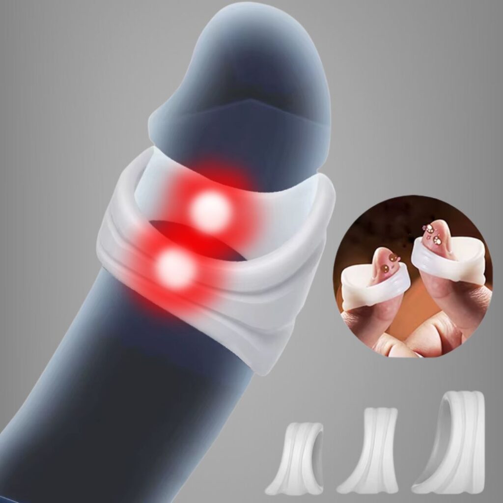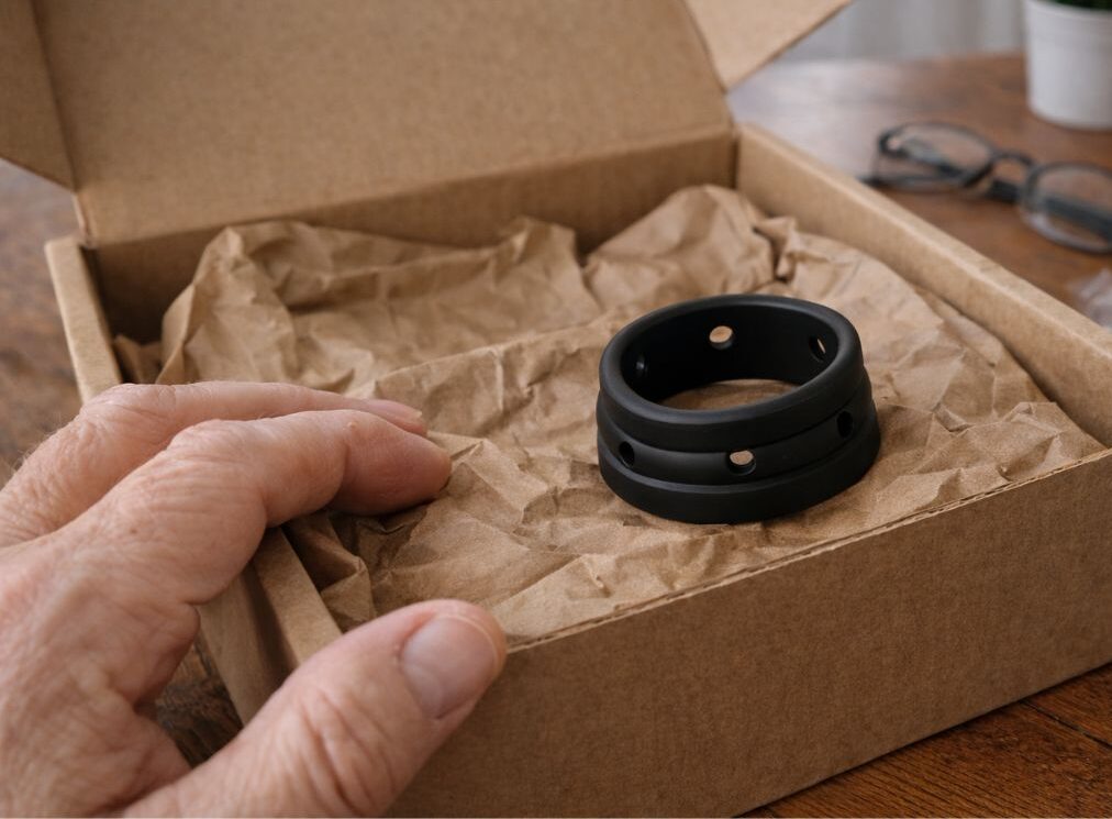 The device consists of a microchip encapsulated in Grade VI Hypoallergenic Surgical Silicone — the same material used in cardiac valves and stents. It is positioned on the glans penis for 5 minutes before intercourse.